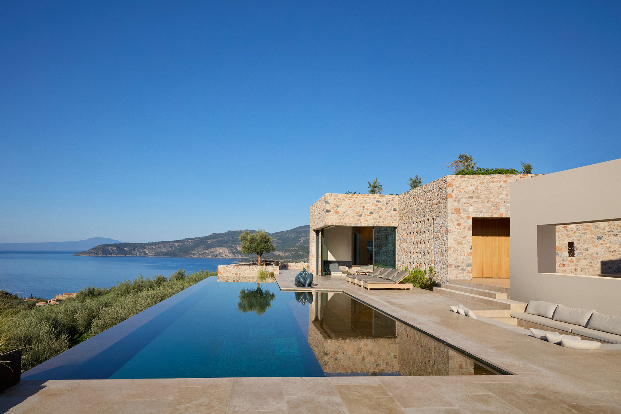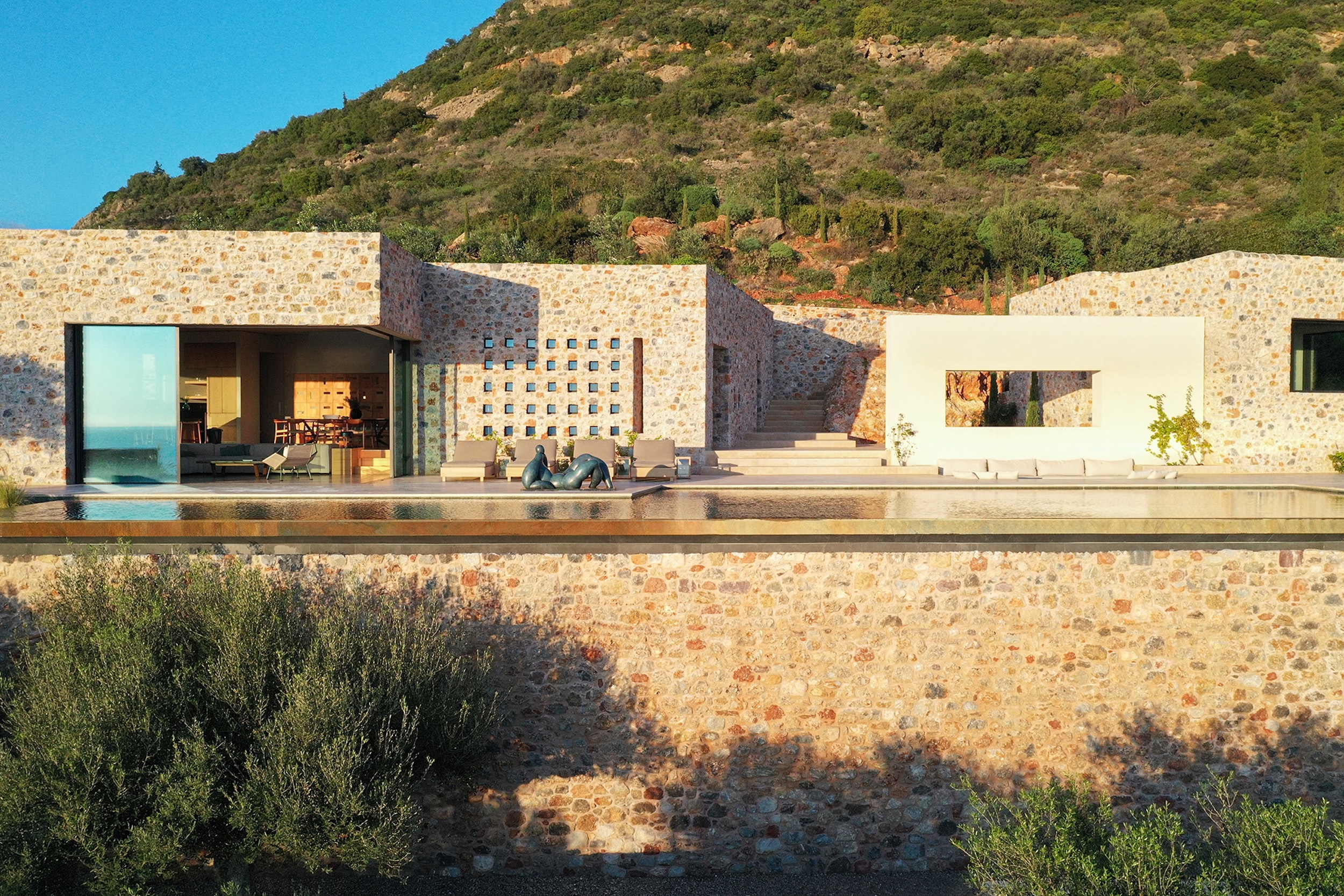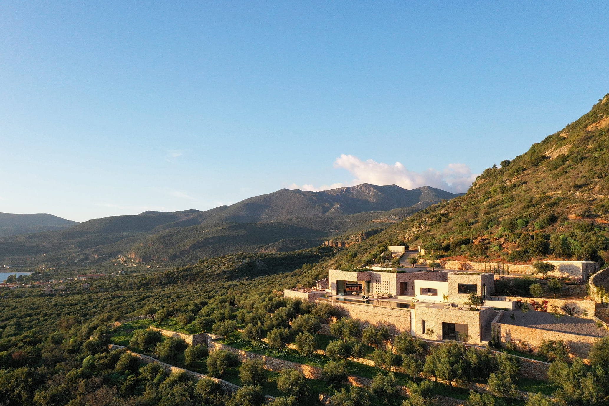 Aether, nestled on a tranquil slope in the picturesque village of Kardamyli, Greece, is a refined retreat envisioned by Head Architect Eleanna Kokkaliari and Principal Engineer Dimitris Pastras of DETALE.