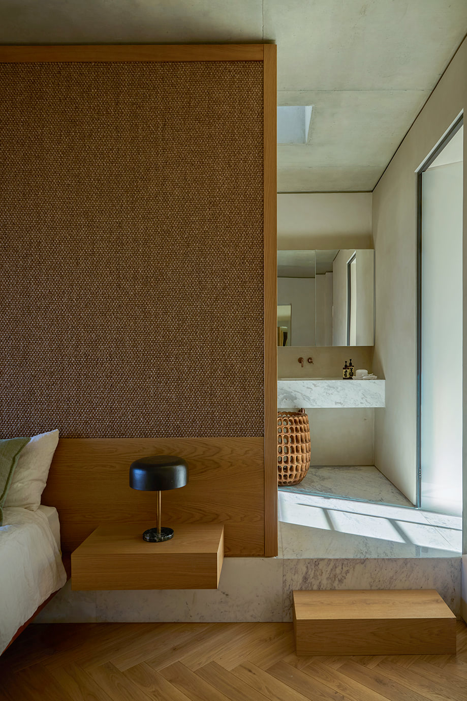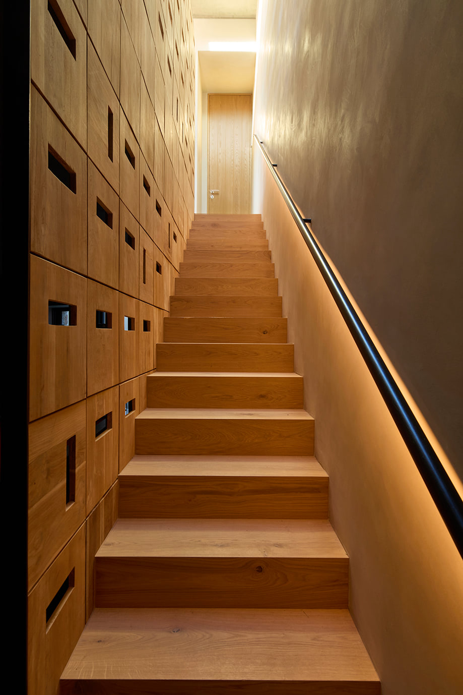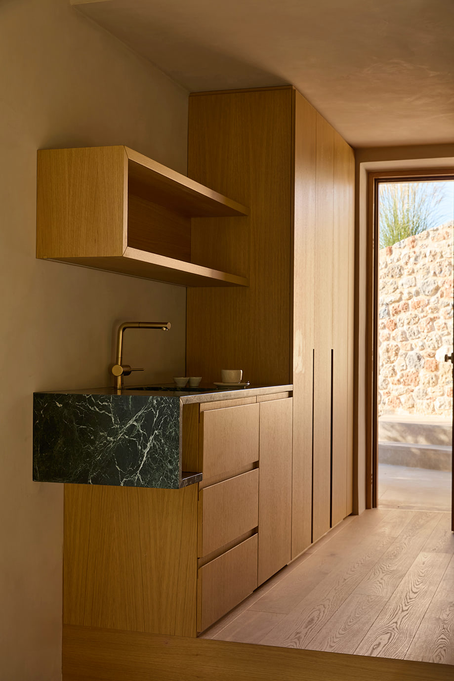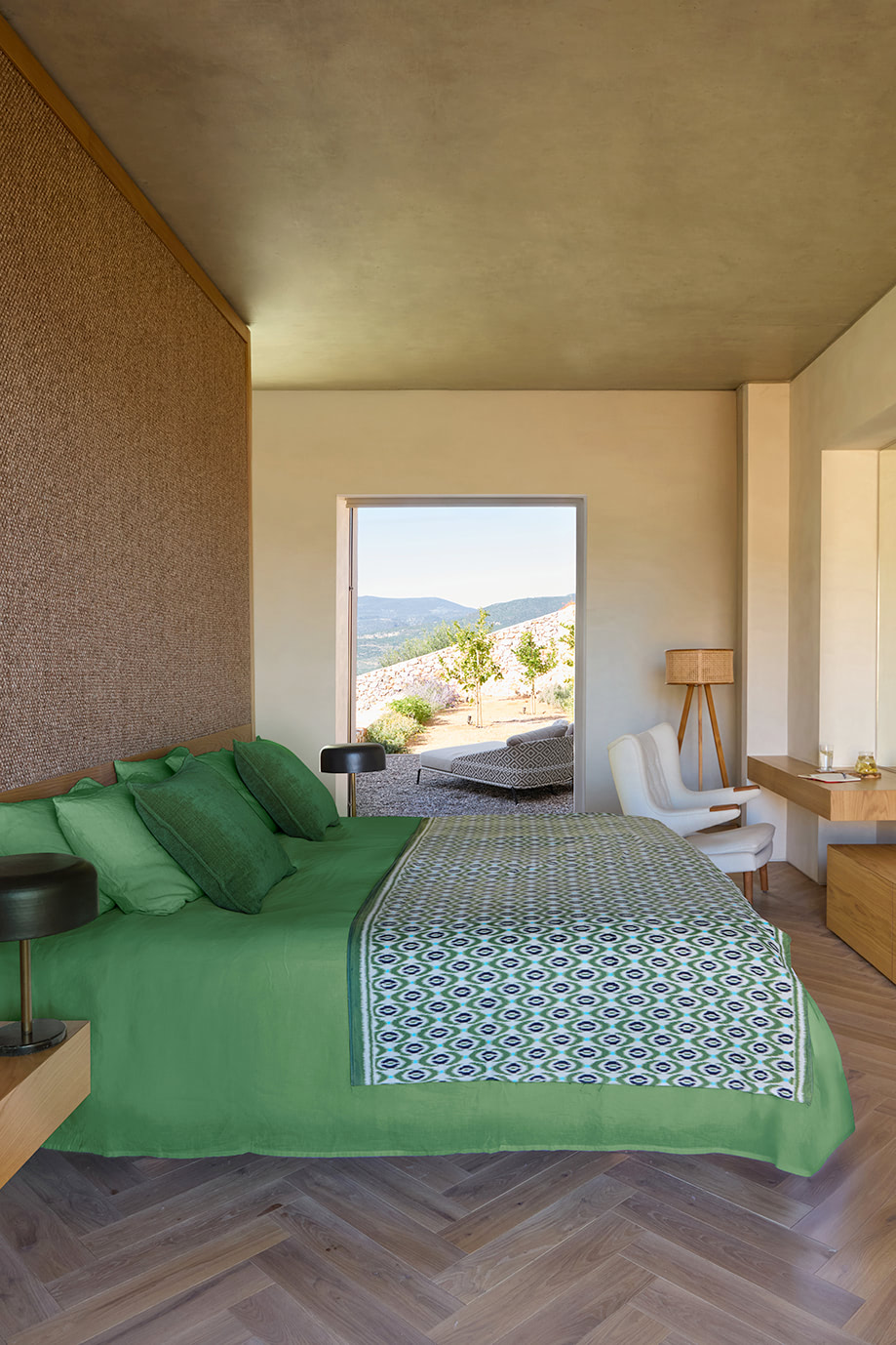 Discreetly “sunk” into the landscape, the house remains virtually invisible from afar, preserving the natural character of its surroundings.